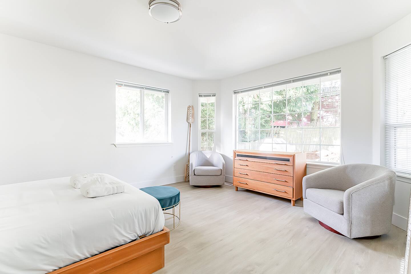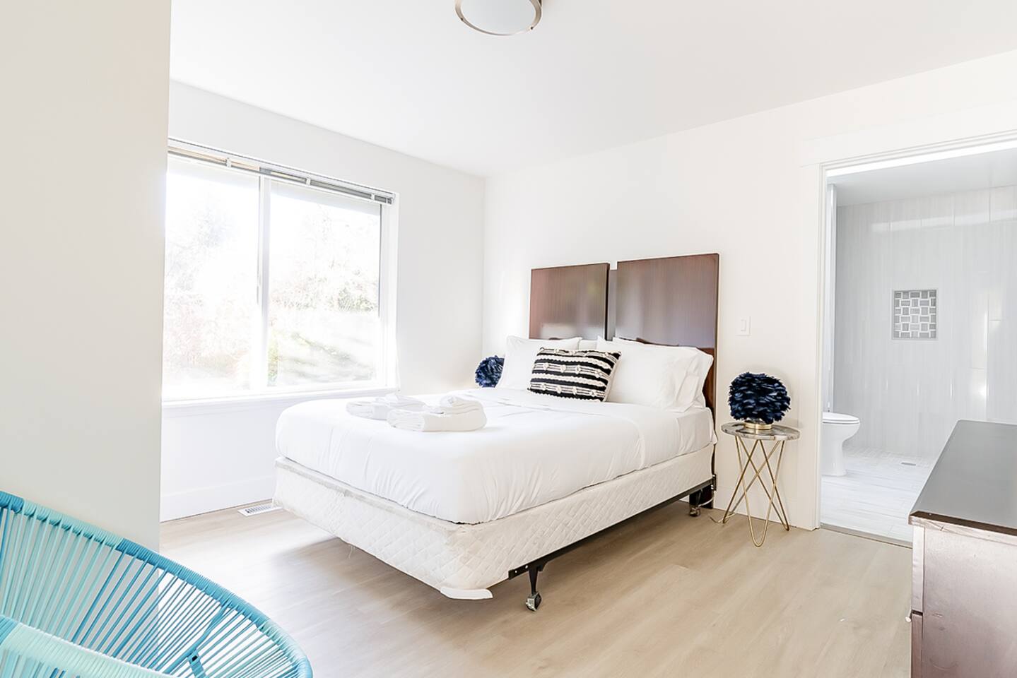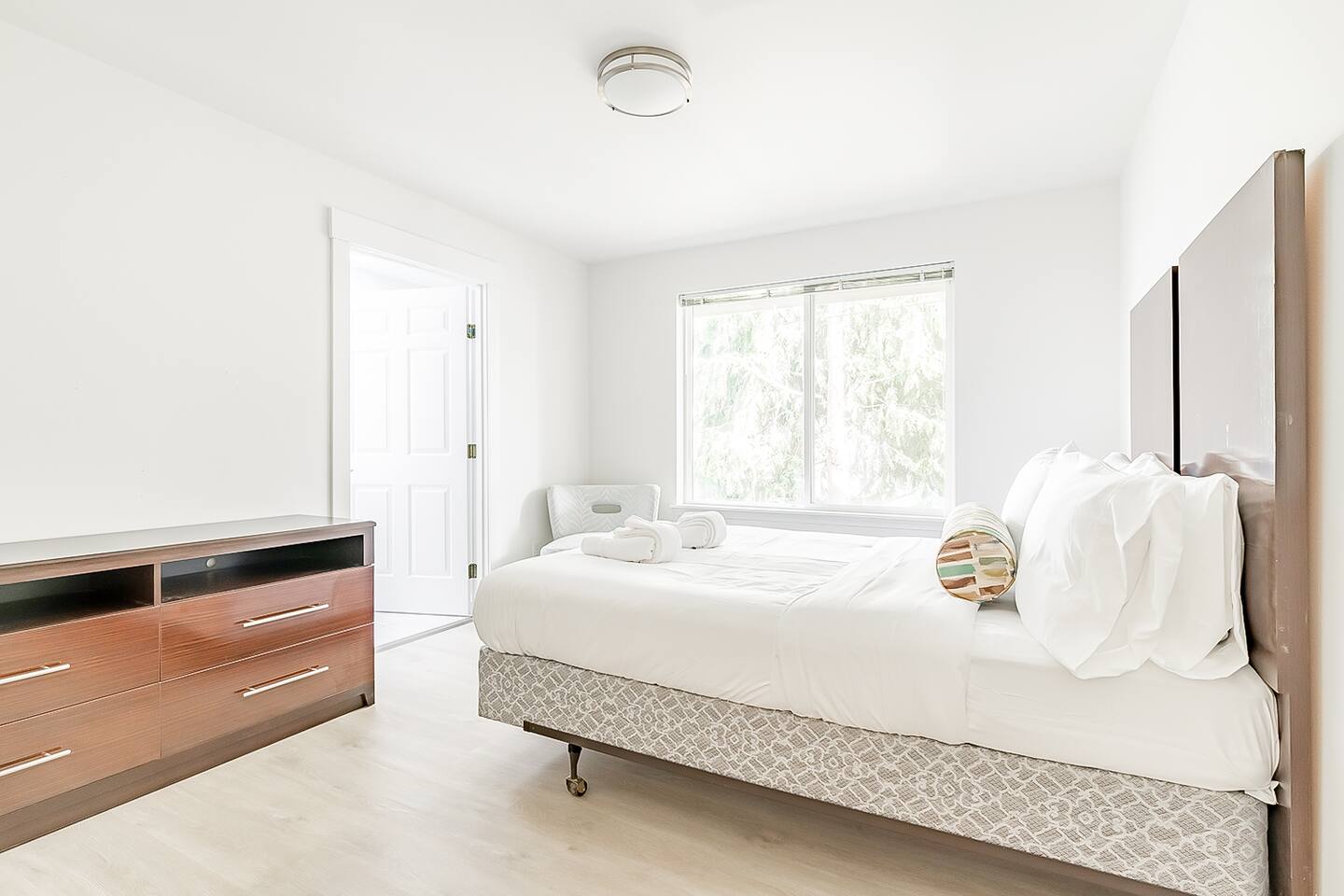 Welcome to your perfect group getaway! This spacious 4,500 sq ft modern home offers 8 bedrooms and 7 bathrooms across two levels, with thoughtful amenities and stylish decor throughout. Whether you're gathering for the holidays, a reunion, or just a relaxing escape, you'll love the comfort and functionality of this beautifully designed space. Key Features: - 8 Bedrooms & 7 Bathrooms - 2 Full Kitchens + 2 Dining Areas - Entertainment Room with Massive Video Wall - Large Backyard with Firepit & Outdoor Seating - 4 En-Suite Bedrooms with Premium Sealy Bedding - Central AC & Heating - Private Driveway (Fits 6 Cars) - Keyless Entry & Washer/Dryer Main Level - Living Area - Dining area - Kitchen - Bedroom 1: Queen bed + clothing storage - Bedroom 2: King bed + closet + ensuite full bathroom with curbless walk-in shower - Bedroom 3: King bed + closet + ensuite full bathroom with curbless walk-in shower - Bedroom 4: King bed + closet + ensuite full bathroom with curbless walk-in shower - Bedroom 5: King bed + closet + ensuite full bathroom with curbless walk-in shower - Laundry room: Washer + dryer - Shared full bathroom with curbless walk-in shower Basement - Common area with billiard pool table - Basement kitchen with dining area and access to the backyard with a fire pit - Entertainment room with large video wall screen and sectional sofas - Shared full bathroom with curbless walk-in shower + washer & dryer - Shared full bathroom with walk-in shower and tub - Bedroom 6: Queen bed + closet - Bedroom 7: Queen bed + closet - Bedroom 8: Full bed + closet **Exciting news! We've upgraded the bedding in the four main-floor bedrooms from queens to kings for added comfort. While the listing photos haven't been updated yet, rest assured the changes are already in place. A professional photoshoot is scheduled soon.** Nearby Attractions: - North Acres Park - 10 to 15 min walk - Jackson Park Golf Course & South Park Area - 10 to 15 min walk - Northgate Park - 10 to 15 min walk PET POLICY We love hosting guests with pets and happily welcome dogs! Please note that we don’t allow cats, as we want to be mindful of future guests who may have allergic sensitivities. Please inform us in advance if you plan to bring a pet. Fee: $150/pet per stay.