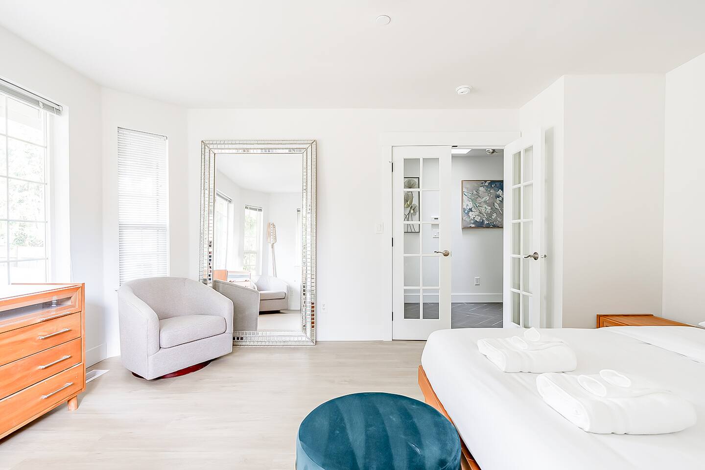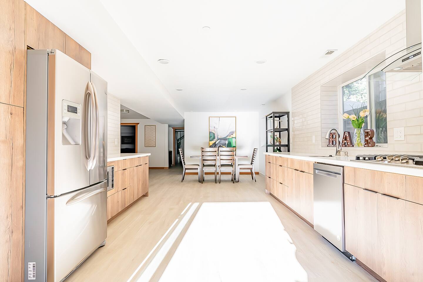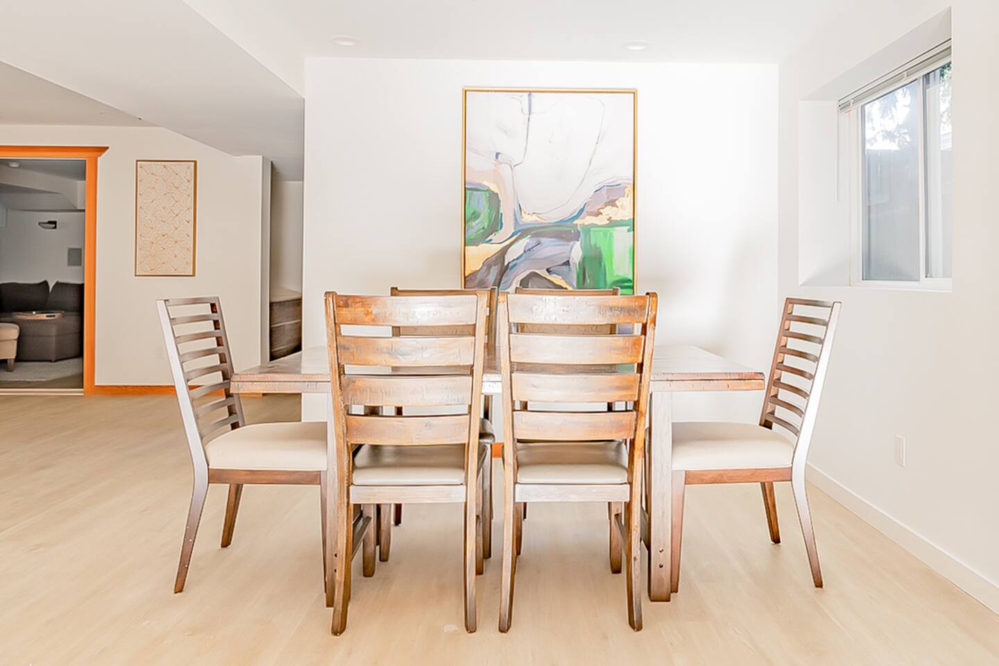 Welcome to your perfect group getaway! This spacious 4,500 sq ft modern home offers 8 bedrooms and 7 bathrooms across two levels, with thoughtful amenities and stylish decor throughout. Whether you're gathering for the holidays, a reunion, or just a relaxing escape, you'll love the comfort and functionality of this beautifully designed space. Key Features: - 8 Bedrooms & 7 Bathrooms - 2 Full Kitchens + 2 Dining Areas - Entertainment Room with Massive Video Wall - Large Backyard with Firepit & Outdoor Seating - 4 En-Suite Bedrooms with Premium Sealy Bedding - Central AC & Heating - Private Driveway (Fits 6 Cars) - Keyless Entry & Washer/Dryer Main Level - Living Area - Dining area - Kitchen - Bedroom 1: Queen bed + clothing storage - Bedroom 2: King bed + closet + ensuite full bathroom with curbless walk-in shower - Bedroom 3: King bed + closet + ensuite full bathroom with curbless walk-in shower - Bedroom 4: King bed + closet + ensuite full bathroom with curbless walk-in shower - Bedroom 5: King bed + closet + ensuite full bathroom with curbless walk-in shower - Laundry room: Washer + dryer - Shared full bathroom with curbless walk-in shower Basement - Common area with billiard pool table - Basement kitchen with dining area and access to the backyard with a fire pit - Entertainment room with large video wall screen and sectional sofas - Shared full bathroom with curbless walk-in shower + washer & dryer - Shared full bathroom with walk-in shower and tub - Bedroom 6: Queen bed + closet - Bedroom 7: Queen bed + closet - Bedroom 8: Full bed + closet **Exciting news! We've upgraded the bedding in the four main-floor bedrooms from queens to kings for added comfort. While the listing photos haven't been updated yet, rest assured the changes are already in place. A professional photoshoot is scheduled soon.** Nearby Attractions: - North Acres Park - 10 to 15 min walk - Jackson Park Golf Course & South Park Area - 10 to 15 min walk - Northgate Park - 10 to 15 min walk PET POLICY We love hosting guests with pets and happily welcome dogs! Please note that we don’t allow cats, as we want to be mindful of future guests who may have allergic sensitivities. Please inform us in advance if you plan to bring a pet. Fee: $150/pet per stay.
