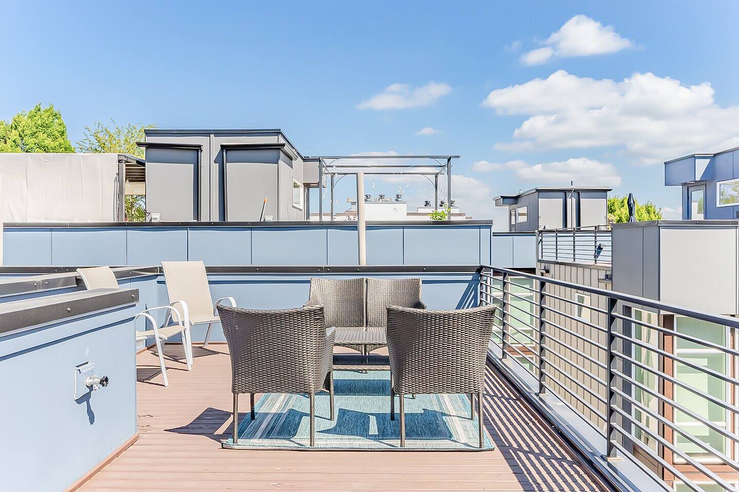 Welcome to your modern Seattle escape in the heart of East Queen Anne. Enjoy a private rooftop, perfect for unwinding after a day of exploring the city. HOME HIGHLIGHTS: - Fully equipped kitchen with Keurig, K-pods, gourmet teas, cookware, and utensils - Smart TV with free Netflix - High-speed Wi-Fi - Air conditioning for year-round comfort (1st and 3rd floors) - Washer and dryer - Pack ’n Play available (Note: no baby pillows or blankets provided for safety—please bring your own) HOME LAYOUT: Main Floor: - Living room - Kitchen - Dining area - Laundry area Second Floor: Bedroom 2: Queen bed Third Floor: Bedroom 1: King bed Parking: Includes one dedicated parking spot. NEARBY ATTRACTIONS: - McGraw Square 10 MIN DRIVE - Kerry Park 10 To 15 MIN DRIVE - Trolley Hill Park 10 MIN WALK - Queen Anne Boulevard Historic Landmark 10 MIN WALK NOTE: Guests are not allowed to stay in the house for more than 29 consecutive days at a time.