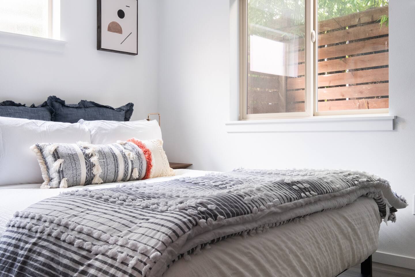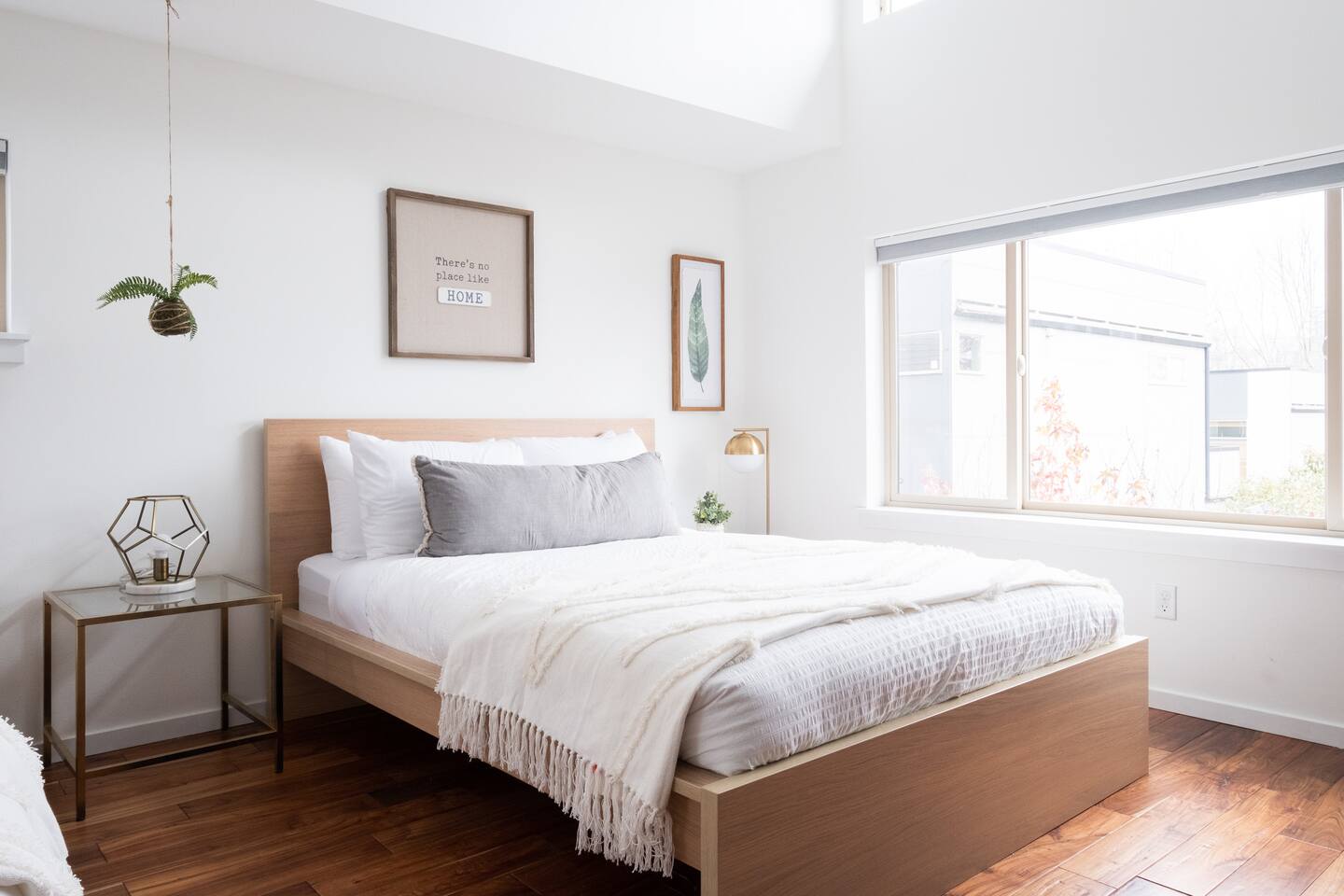 Relax in this serene, stylish 3BR Seattle retreat, featuring warm bamboo floors, quartz countertops, and four plush queen beds across three cozy bedrooms. Enjoy a private patio and backyard, off-street parking, and easy access to downtown, top restaurants, and outdoor adventures. Perfect for families, small groups, or friends seeking comfort and convenience in a quiet yet central location.